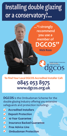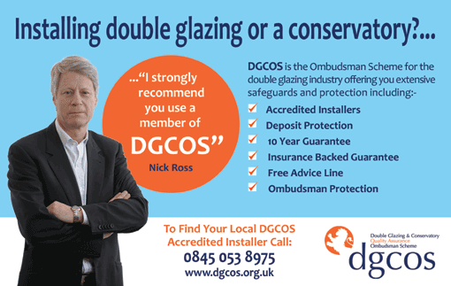 DGCOS has the backing of the peoples’ consumer champion, Nick Ross. It protects consumers against cowboy operators. The former BBC Crimewatch and Watchdog presenter is the ambassador of the Ombudsman Scheme, which provides comprehensive protection for homeowners installing windows, doors, conservatories, orangeries and associated products by its members.